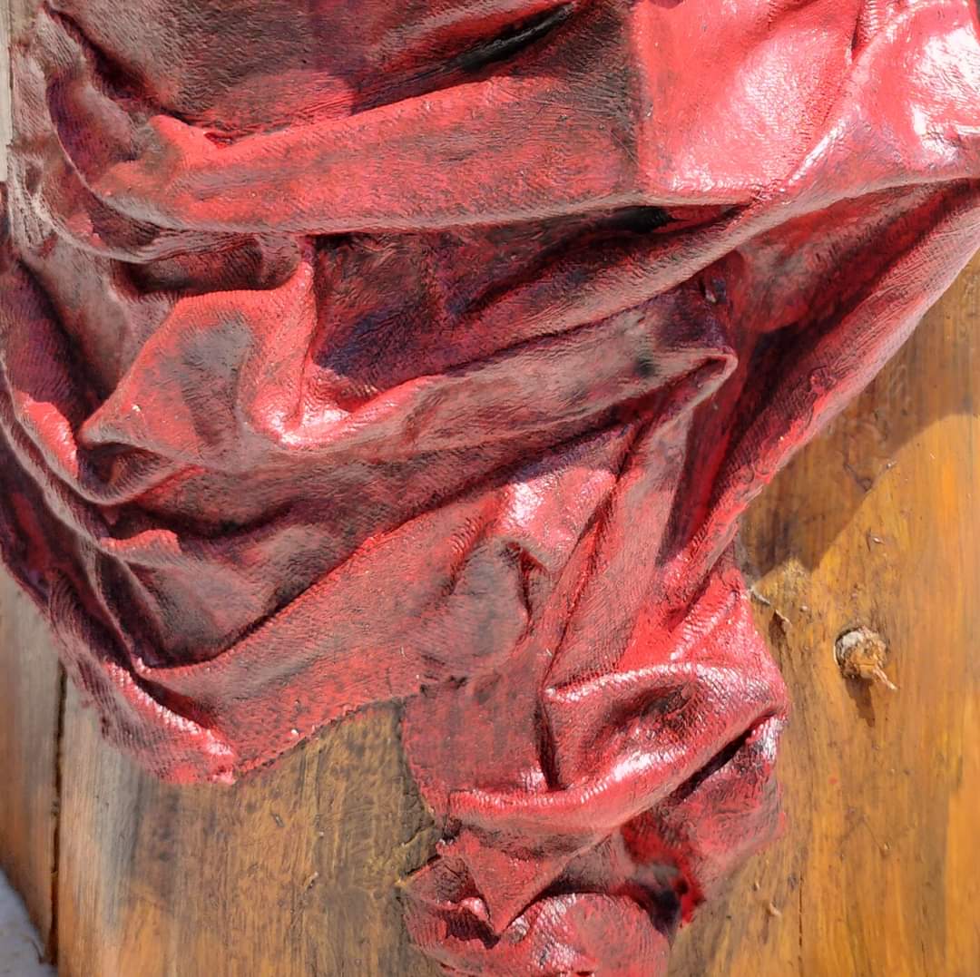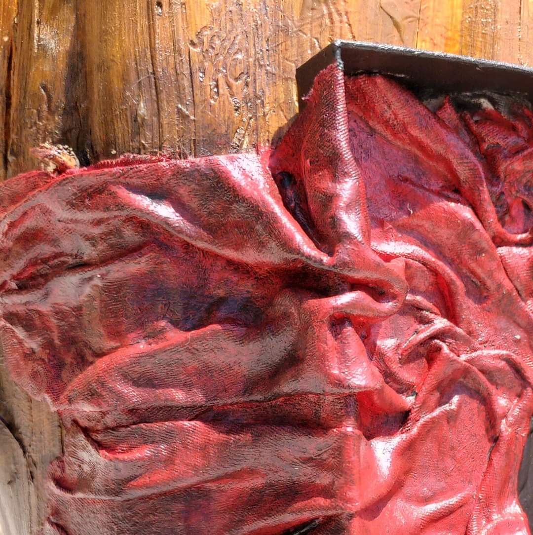 LA SINDONE DI ACHILLE The Greek Myth Collection No. 4 joan josep barceló i bauçà pittura tecnica mista su legno di cipresso: acrilico, inchiostro, cartone, tessuto di cottone e silicone. 31x13cm.