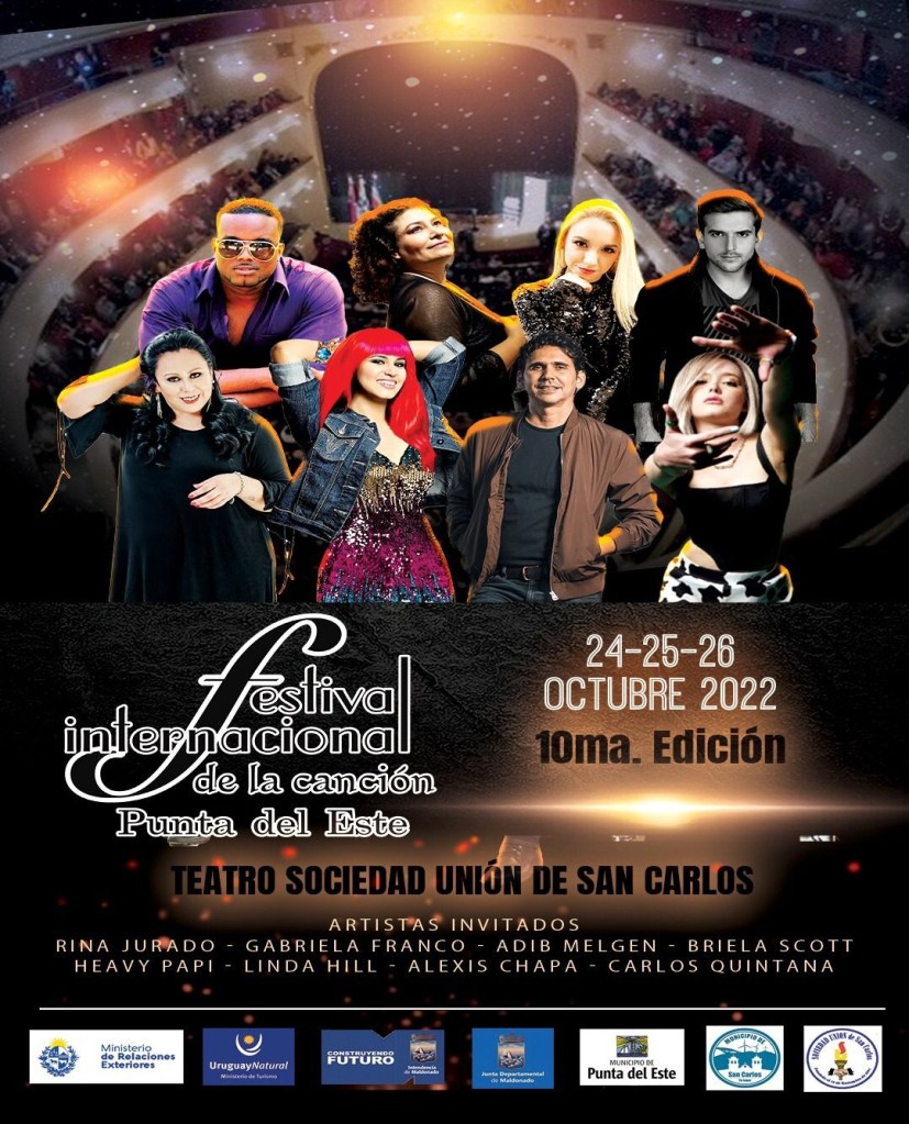 Il Festival della Canzone di Punta del Este Uruguay ha ospiti internazionali. Si svolge per 3 giorni consecutivi e al termine del 3° giorno viene annunciato il vincitore. Anche il voto virtuale viene considerato, tramite Instagram e Facebook, sulle sue pagine il 24/25/26 ottobre p.v.