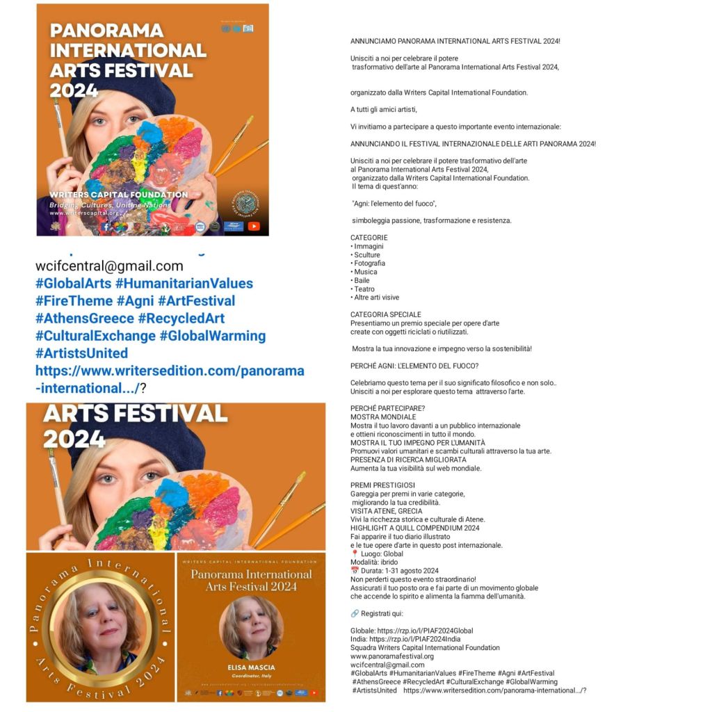 IV edizione del Panorama International Arts Festival (PIAF) 2024, organizzato dalla Writers Capital International Foundation.