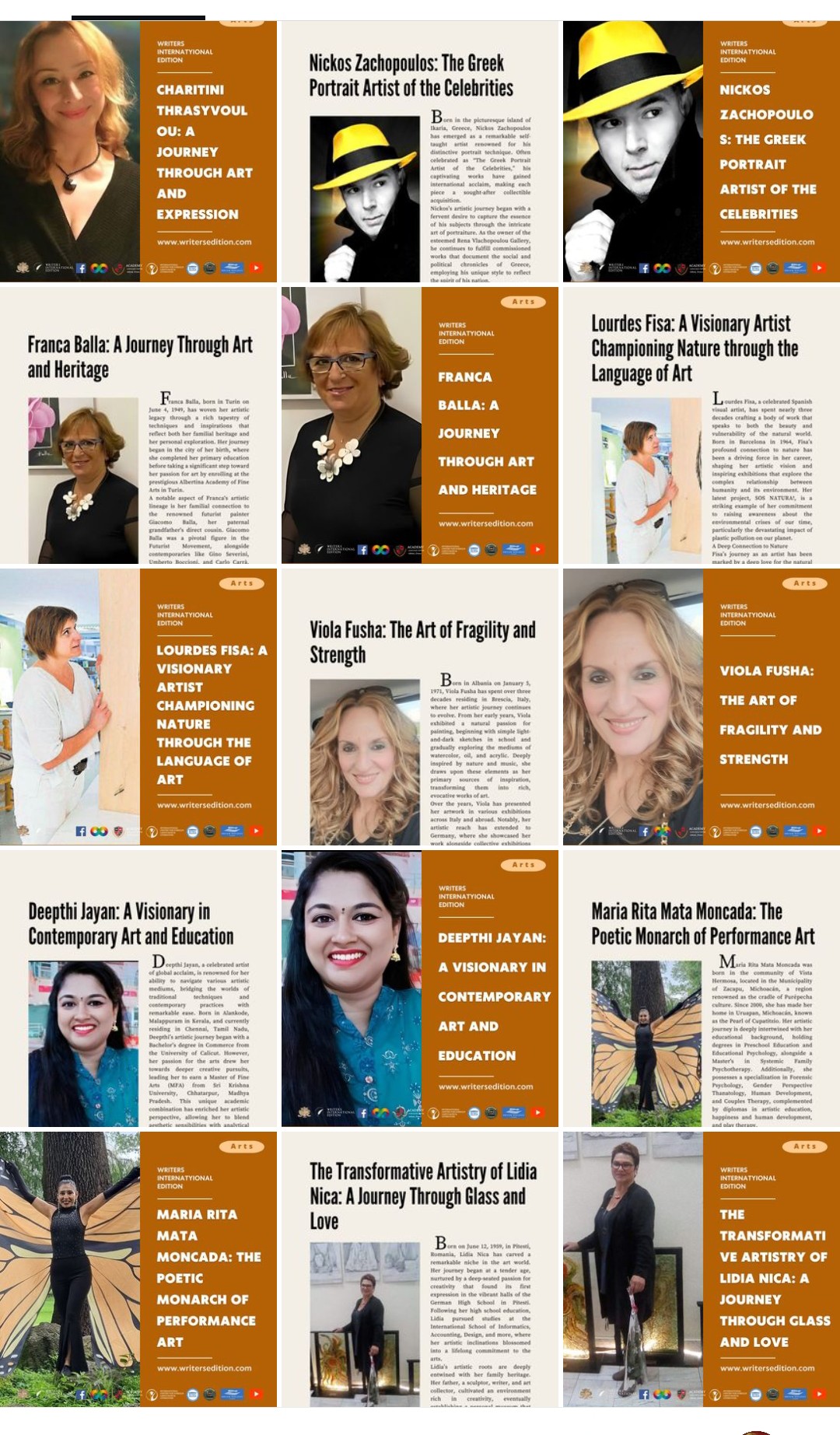 Siamo onorati di mettere in luce illustri artisti del mondo come gli eccellenti partecipanti al festival dell’arte . promuovendo il dialogo interculturale e arricchendo la comunità globale attraverso le loro iniziative innovative.