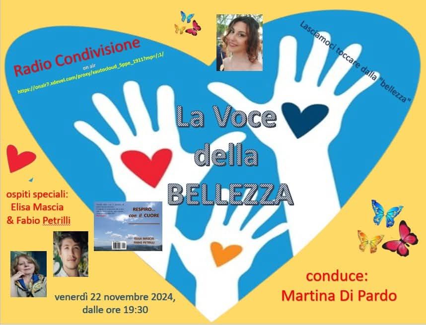 Ho avuto il piacere di intervistare il poeta e scrittore Fabio Petrilli e la poetessa e scrittrice Elisa Mascia. Attraverso le parole di Fabio si evince l’amore che lui nutre nei confronti della poesia e proprio l’incontro con la scrittura poetica ha rappresentato nella sua vita un cercare, trovare e ritrovare una vicinanza con le parole per scoprire e riscoprire un fratello o una sorella che mancano nella sua vita. Mi sono sentita molto vicina a Fabio in questa sua ricerca interiore. Con Elisa abbiamo parlato di poesia che crea e solidifica legami. La sua è una poesia che nasce dall’amore che nutre per la sua famiglia. La sua poesia incontra la poesia di tutto il mondo. Si è aperta agli ascoltatori parlando dei suoi incontri con grandi poeti internazionali. Questo suo muoversi all’interno di una grande rete sociale, globale e culturale dimostra quanto sia importante confrontarsi, conoscersi, guardarsi, comprendersi perché siamo tutti i protagonisti del mondo e della grande storia che è la vita. Questo suo agire è fondamentale soprattutto nei tempi complessi in cui ci troviamo a vivere. Il dialogo interculturale è una grande prova e forma d’amore che dovremmo imparare tutti a consolidare. Abbiamo avuto modo di parlare della genesi e del progetto della loro silloge poetica “Respiro … con il cuore” presente su Amazon. Grazie a voi per questo profondo momento di condivisione. Per riascoltare l’intervista completa clicca sul link: https://www.pietrolabarbera.it/wp-content/uploads/2024/11/La-Voce-della-Bellezza-Radio-Condivisione-Martina-Di-Pardo-Elisa-Mascia-Fabio-Petrilli-22-novembre-2024.mp3