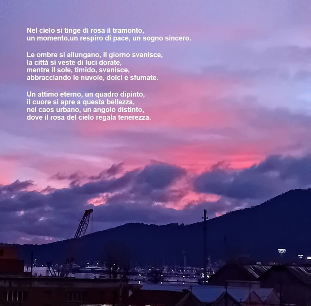 Nel cielo si tinge di rosa il tramonto, un momento,un respiro di pace, un sogno sincero.