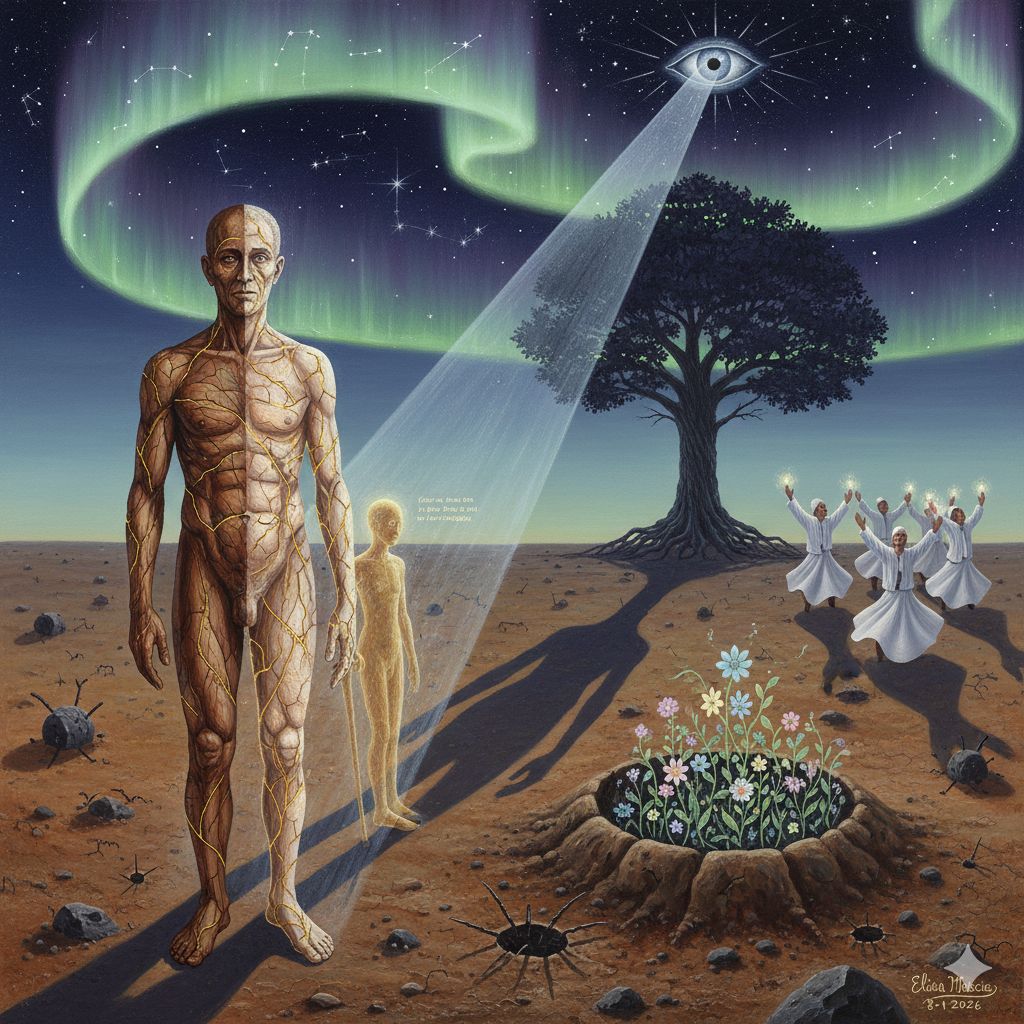 Nelle notti di pazienza, ho visto Dio camminare con me sulla stampella del dolore, sussurrandomi all’orecchio: “Ciò che si è spezzato in te si è espanso in Me”. Così, ho iniziato a cantare il mio dolore come i Dervisci cantano i loro nomi, roteando intorno alla ferita finché il coltello non si è stancato, e ho trovato la mia pace.